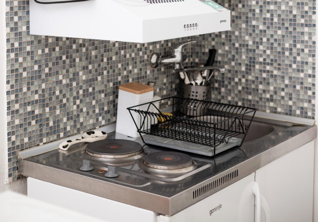 Guests have at their disposal a fully equipped, perfectly clean, and comfortable apartment with a bathroom, kitchen, and living/sleeping area. The apartment features a king-size bed.