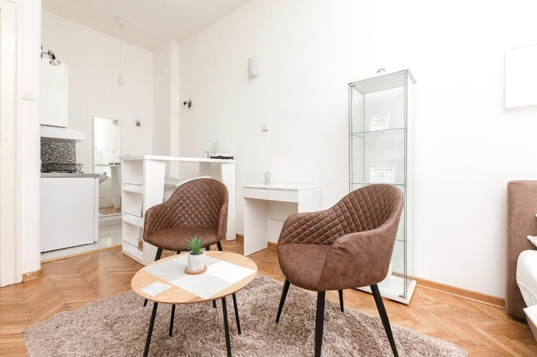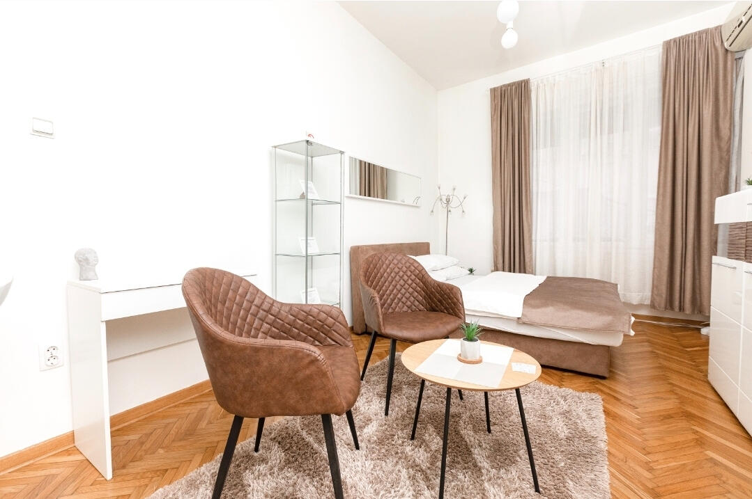 1st Belgrade Apartment is located in Belgrade, in the Vračar area, on Golsvordijeva Street, on the first floor of a building with classic salon-style apartments (ceiling height 3.2 m), and has a total area of 30 sqm.